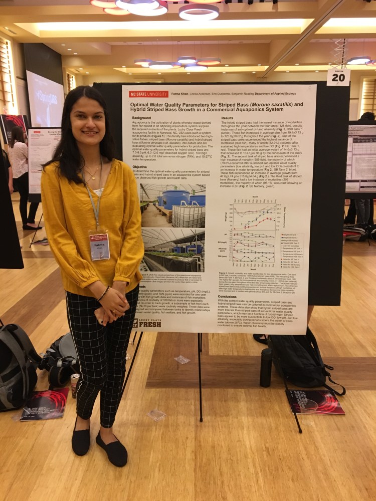 Kahn, F., Andersen, L.K., Ducharme, E., and Reading, B.J. 2019. Optimal Water Quality Parameters for Striped Bass (Morone saxatilis) and Hybrid Striped Bass Growth in a Commercial Aquaponics System. The 28th Annual North Carolina State University Spring Undergraduate Research + Creativity Symposium. April 24. Raleigh, NC, USA. Poster.